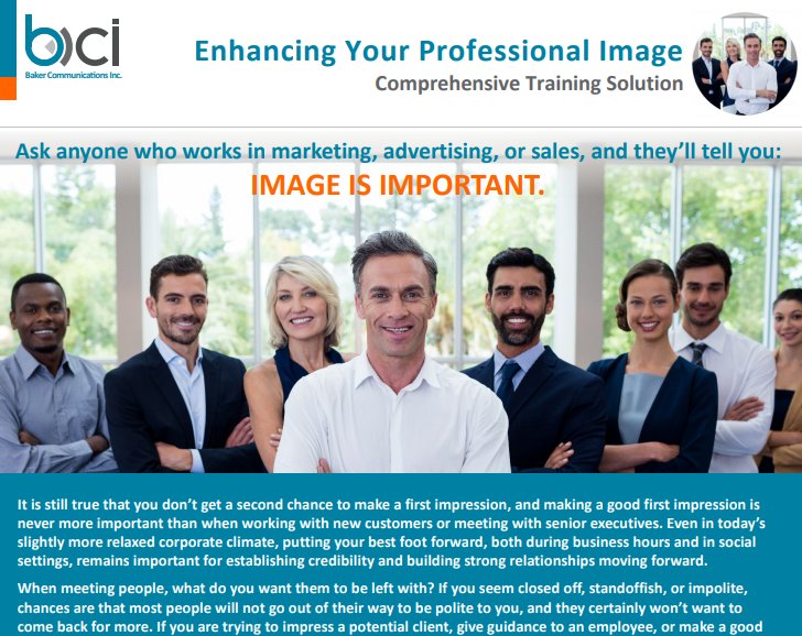 Our Enhancing Your Professional Image course is available in a variety of formats to best match your needs. Click the Delivery Methods below to learn more.
